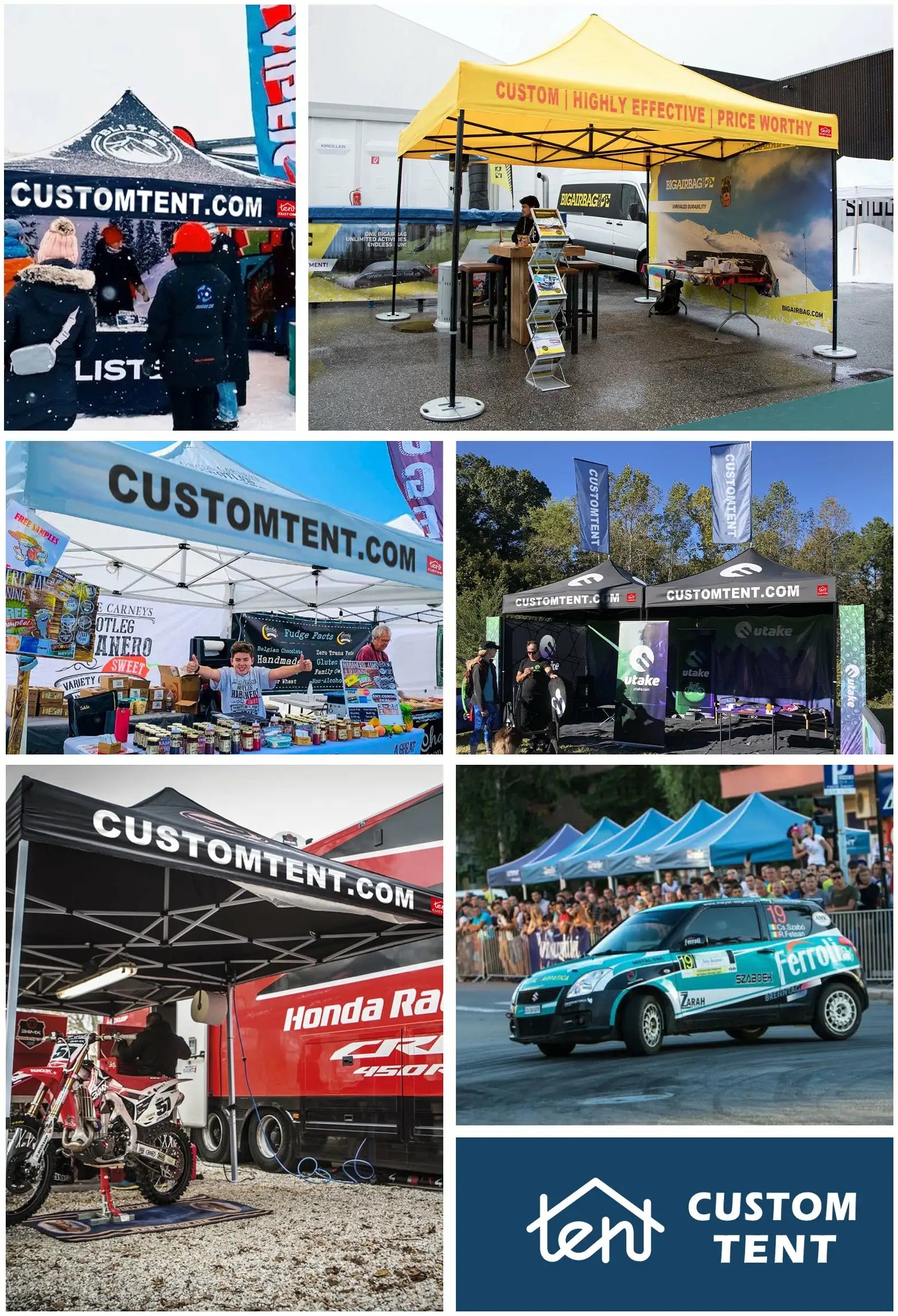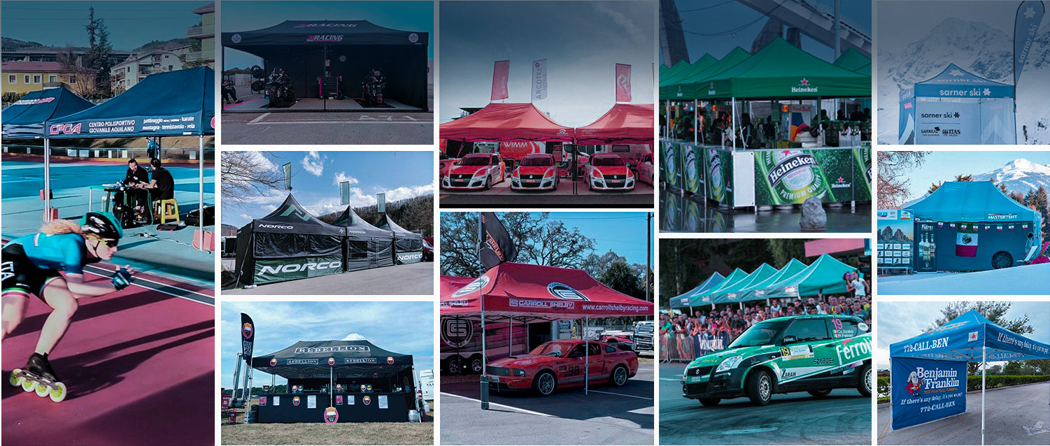 Custom Tents, we are the direct tent manufacturer and we are able to customize tents in different styles with custom graphics and an array of useful accessories.