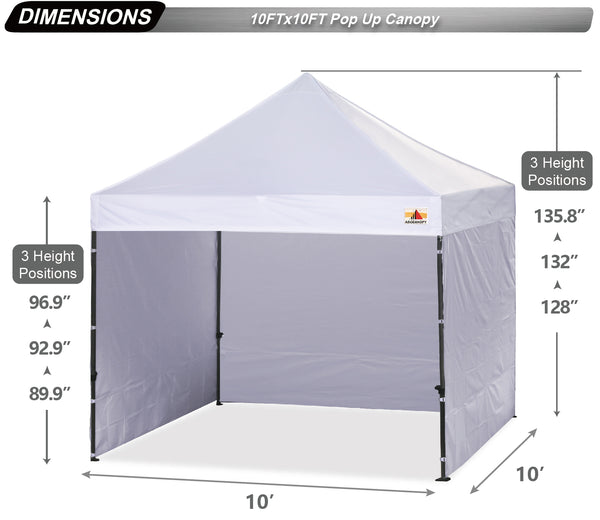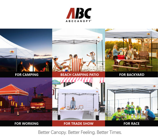 No tools required, could be set up by 1 or 2 people. The latest thumb button release levers technology, makes set-up and close real safe, comfortable and reliable. Three height positions for your choice, clearance height from 6.4ft, 6.7ft to 7ft. Peak height from 10.5ft, 10.8ft to 11.1ft. Just adjust it to your expected height.