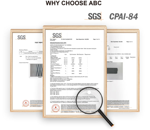 Sliver coated 300D PU polyester with CPAI-84 fire retardant certification, block 99.99% UV rays. Stitching lines are all seam sealed to prevent water penetrate from seams. 100% Waterproof. Steel D Rings on each corner, easy to use a rope to secure your canopy. Velcro straps on each valance to keep the canopy stick on the frame. Stable in the wind.